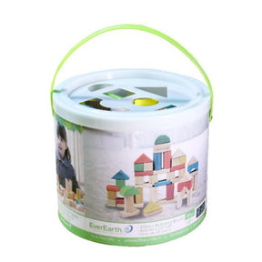 Encourage your child's creative side and improve their hand/eye coordination with this set of beautifully designed EverEarth blocks. The set contains 50 different coloured blocks, all stored in a convenient carry bucket. The block bucket also features a shape sorting lid to make packing up fun!