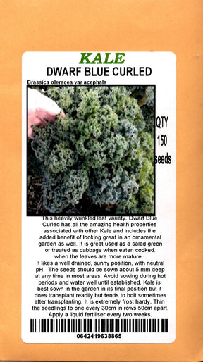 Kale is deicious used in salads, stir fries, casseroles, or roasted kae chips. The plant a well drained, sunny position, with neutral soil pH.