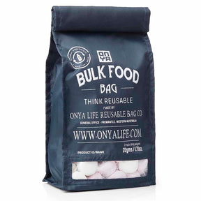 Sick of wasteful single-use plastic packaging? Buy your food in bulk using the funky, retro style Onya bulk food bags! Every Onya bulk food bag has been skilfully manufactured from the by-products of recycled plastic drink bottles. They can be used again and again, replacing many forms of single use plastics. The bulk food bags come in 3 convenient sizes and can be purchased separately or as a set with the inclusion of the Onya tote bag.
