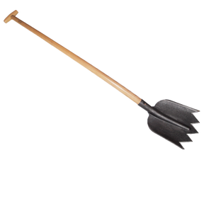 The Spats Shovel is an ideal tool for digging into hard clay soil. This is a shovel and a fork and a root cutter all in one and its T-handle design eases stress on the hand and wrist.