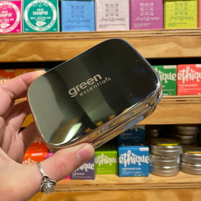 This leak-resistant stainless steel soap container* is an eco alternative to plastic soap containers and ideal for travelling.