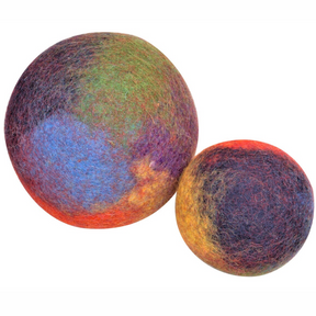 These felt balls are designed to help kids learn while they play. They assist children in learning colours and numbers, and can be used in imaginative play. The balls are a safe and soft way for kids to develop their hand-eye coordination skills. They are sold individually and are lovingly handmade, making every one slightly unique.