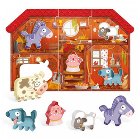 - Puzzle made up of 6 shaped pieces; 5 wooden animals