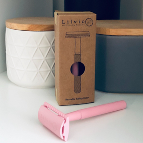 The reusable Lilvio 3 Piece Double Edge Safety Razor. This razor delivers an incredibly close and comfortable shave every time. Suitable for men or women wet shavers, the razor takes standard double edge blade.